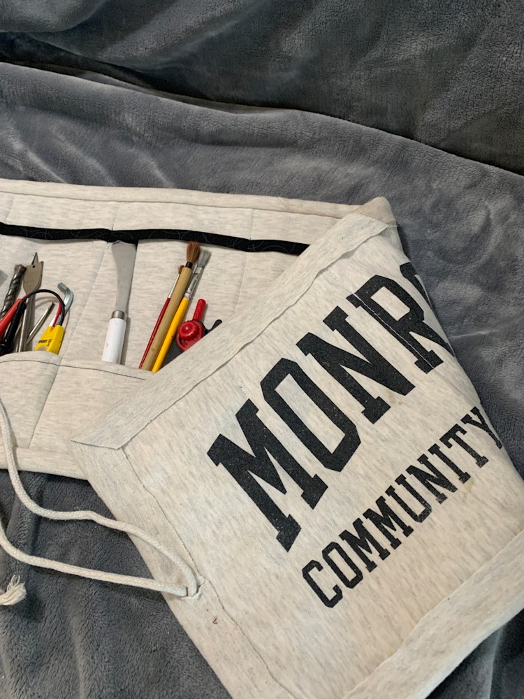 Utility roll-up cases can be used to store a wide range of items, from writing utensils and paintbrushes to technician tools. I can transform a shirt, t-shirt, button shirt, flannel, sweatshirt, jacket, or pants into a plush, sturdy, and well-made utility roll-up case.